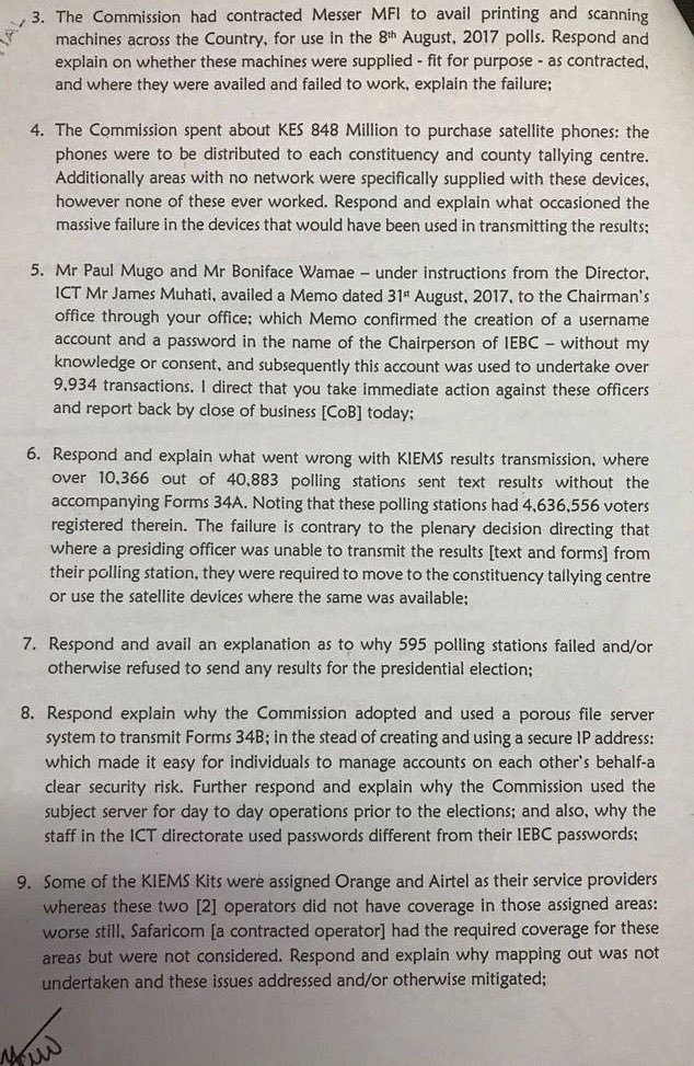 A 12 point memo that has caused crisis which has made the two fall out directs Chiloba to